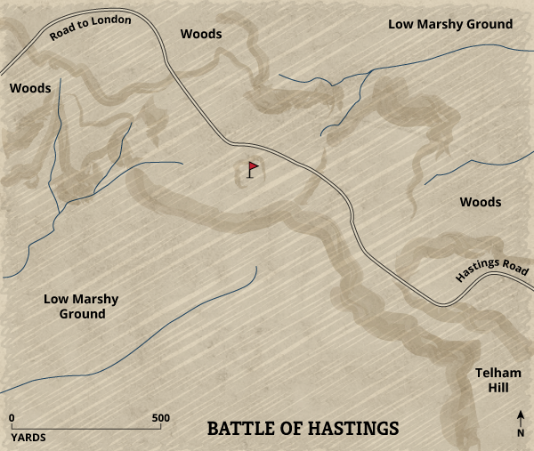 | Harold arrives at Hastings with no cavalry and just a few archers but expects reinforcements to arrive. | ||