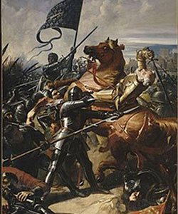 Joan of Arc leads her troops in battle - painting by Hermann Antonn Stilke.