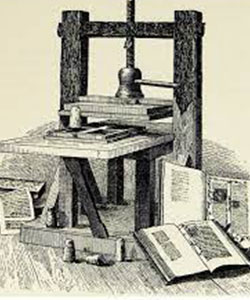 Invented by Johannes Gutenberg this heralds the introduction of the Renaissance period. In 1476 the first book was printed in England.