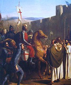 Richard I, Richard the Lionheart, becomes King of England. Having been encouraged by his mother he and his brothers campaigned against their father in France. King Henry was defeated in battle and surrendered to Richard, and so on the July 5th 1189, Richard became King of England, Duke of Normandy and Count of Anjou.