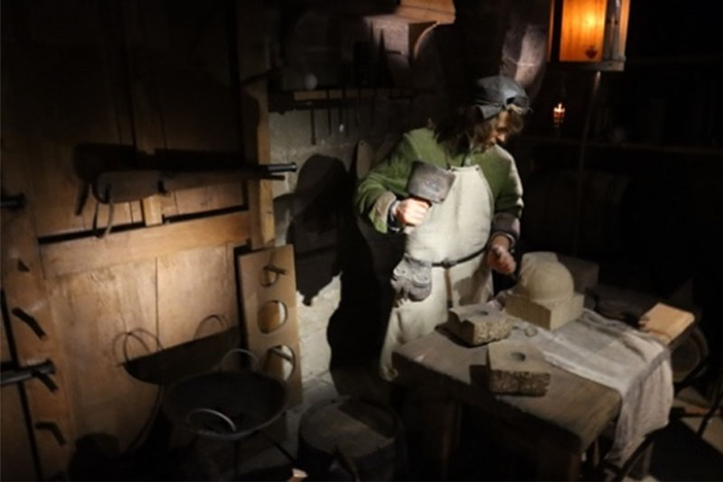 Richard Neville the 16th Earl of Warwick is fitted with his armour by his squire William who is 13 years old and wants one day to become a knight. Let’s see what other tasks are being carried out by skilled artisans of the time...